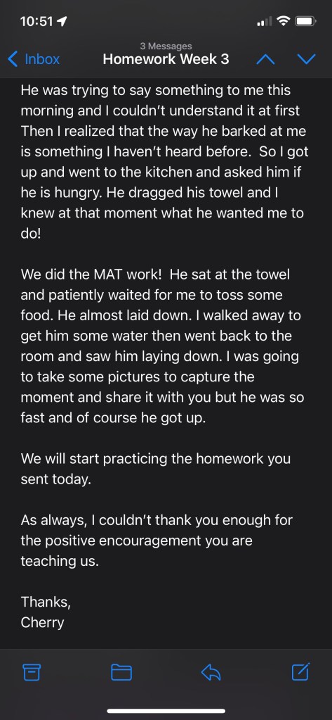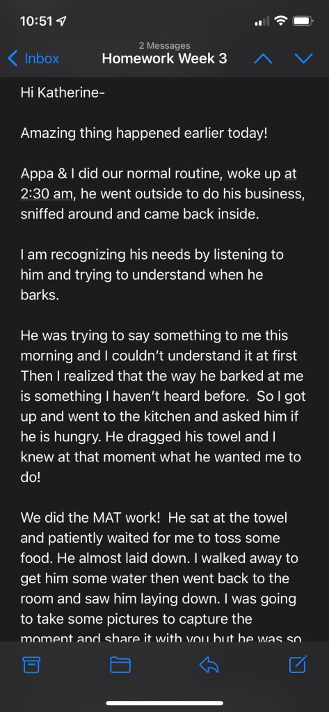 She gives opportunity for choices and she’s learning every day what her dog needs and wants.